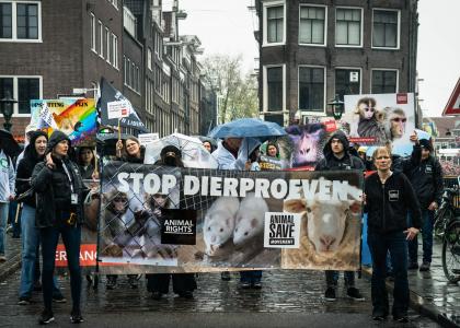 Demonstratie voor wereldproefdierendag 2023 op de Dam
