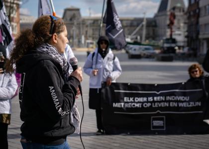 Speech van Animal Rights campagneleider Els Van Campenhout bij de demonstratie op 15 maart 2023 tegen de plannen van Columbi Salmon om de grootste zalmkwekerij van Europa te bouwen in Oostende