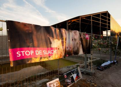 Animal Rights hangt posters op en houdt banneracties in omgeving Drongengoed ter sensibilisatie.