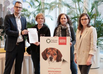 Animal Rights en Partij voor de Dieren Den Bosch hebben gisteren een brandbrief tegen dierproeven aan een naaste medewerker van minister Adema overhandigd. In de brief, die 3.555 keer ondertekend is in vier weken, wordt de minister van LNV gevraagd dierproeven zo snel mogelijk af te bouwen.