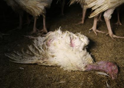 Animal Rights filmde in drie West- en Oost-Vlaamse kalkoenstallen trieste beelden van creperende dieren.