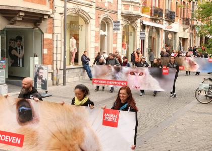 Animal Rights organiseerde afgelopen zondag, naar aanleiding van Wereldproefdierendag marsen in Nederland en België.