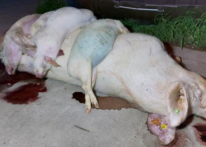 Phaedra en haar biggen hun levens zijn niets waard. Hun levenloze lichamen werden achtergelaten bij de afvalbakken van een Vlaamse varkenskwekerij.
