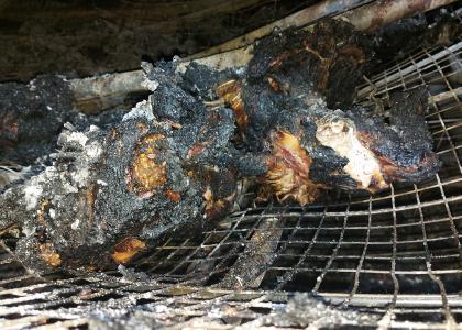 Na twee schoten en een lichaam vol hagel probeert het dier half levend, half dood nog steeds weg te vluchten.