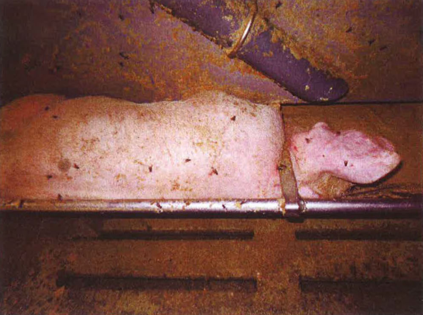 De NWVA dierenartsen beschrijven de toestand in de rapporten als volgt: “Op vier plaatsen zagen wij dat een gebruiksvarken, van ongeveer 25 kg., met hun kop vast zaten in de voertrog. Tenminste 2 van deze biggen hebben wij toezichthouders kunnen bevrijden uit de voertrog en 2 biggen waren vermoedelijk verdronken in de voertrog doordat deze volstroomde en overstroomde door het lekkende water. ”