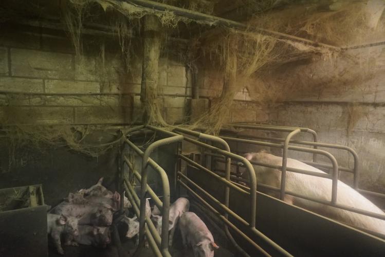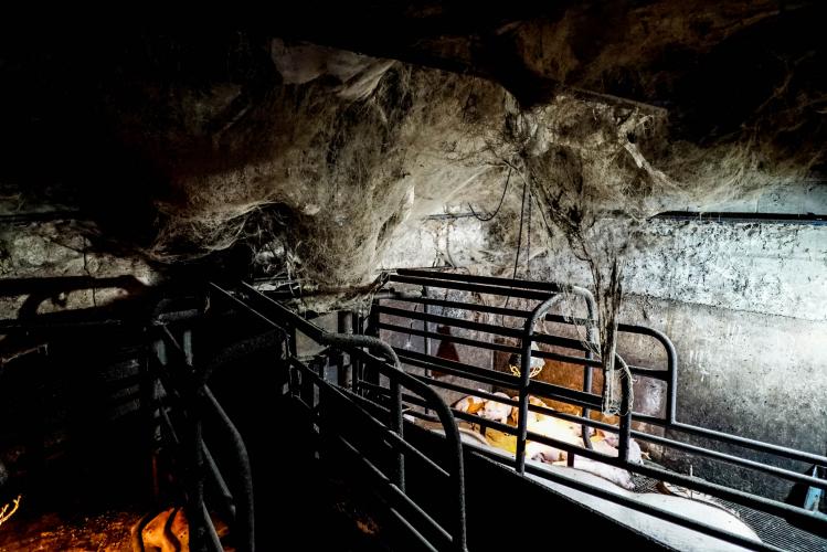 In januari 2019 bracht Animal Rights beelden naar buiten uit die verschrikkelijke smerige stallen. Door heel het geïnspecteerde stallencomplex hing spinrag bezet met stof, als dichte sluiers van het plafond, wanden en leidingen naar beneden. Het vuil was innig verstrengeld met elektrische installaties zoals ventilatie en verlichting. Er was weinig fantasie voor nodig om te bedenken wat één kortsluiting-vonk daar teweeg zou brengen.
