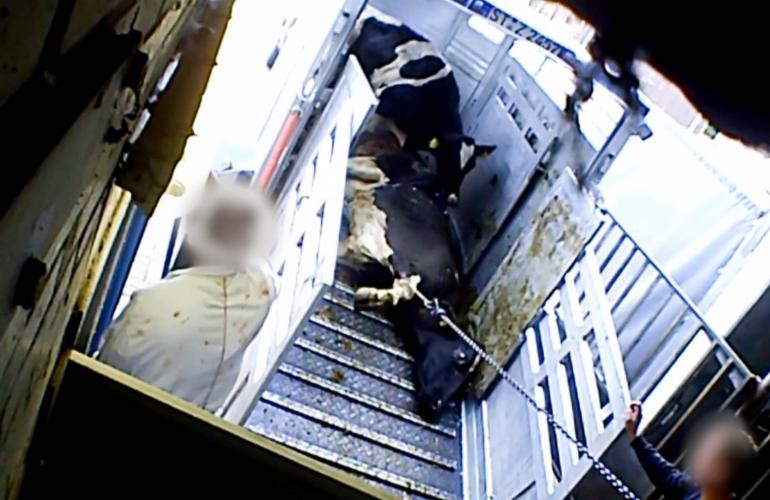 Nadat Animal Rights in oktober beelden uit Duitsland deelde van afgedankte melkkoeien die met kettingen uit transportwagens werden gesleept, duiken er nu beelden op van dezelfde misstanden in Polen. Op undercoverbeelden van de Poolse nieuwszender Tvn24 is te zien hoe ernstig verzwakte koeien die niet eens meer op hun poten kunnen staan door de slachters aan touwen het slachthuis in de buurt van Warschau worden binnengesleept. 1 Ook worden er koeien met tumoren verwerkt en snijden de slagers deze na het slachtproces af.