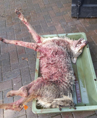 20 minuten later werd de wolf doodgeschoten. Stichting Wildaanrijdingen Nederland hebben toestemming van de provincie om vanuit dierenwelzijn aangereden dieren uit hun lijden te verlossen. 1 De inschatting van de patholoog die de necropsie uitvoerde is dat het dier, met name door bekkentrauma, vrijwel zeker niet had weten te overleven. Rust zacht!